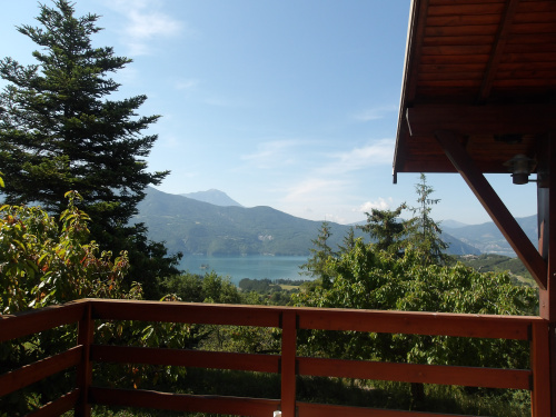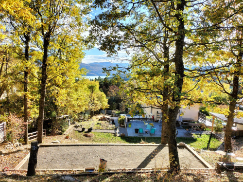 A l'étage: le coin mezzanine bibliothèque ainsi que les 3 chambres dont 2 avec vue lac et les poutres apparentes vont directement vous séduire, la salle de bain vue montagnes avec wc compléte le bien.
